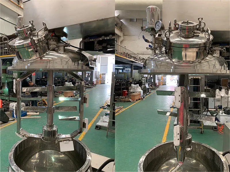 Os recursos de segurança incluem intertravamentos para a tampa do tanque e homogeneizador, alarmes de sobretemperatura/sobrepressão e botões de parada de emergência. Amplamente utilizado em cosméticos (cremes, soros), produtos farmacêuticos (pomadas, emulsões), alimentos (laticínios, molhos) e produtos químicos (lubrificantes, revestimentos), ele capacita os fabricantes a produzir consistentemente produtos estáveis e de alta qualidade.