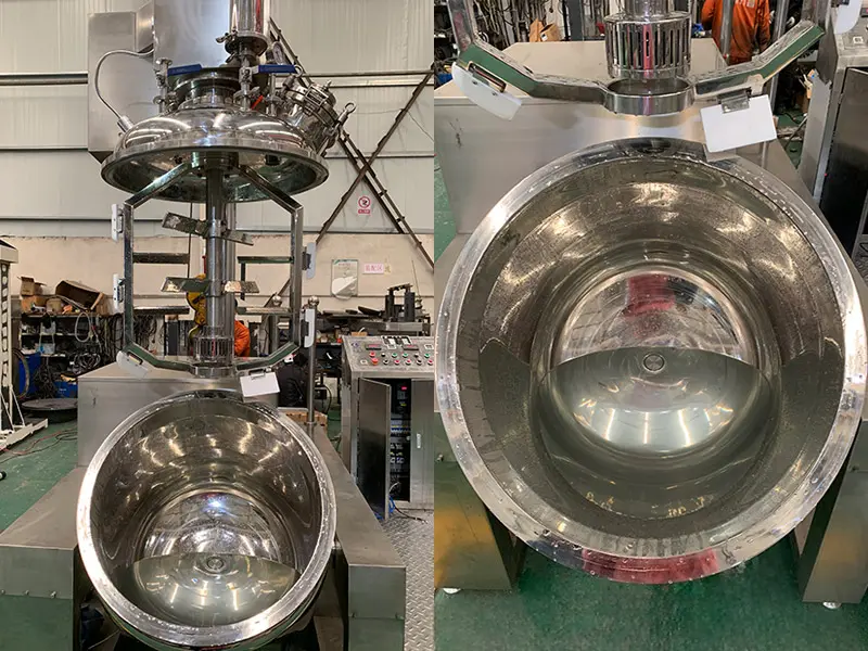 Construído em aço inoxidável 304 de grau alimentício ou 316L de grau farmacêutico, o tanque e as peças de contato são resistentes à corrosão e fáceis de limpar, em conformidade com os padrões GMP e FDA. O sistema de controle PLC com tela sensível ao toque permite o ajuste preciso da temperatura (até 120 ° C), nível de vácuo, velocidade de homogeneização e tempo de mistura, com armazenamento automático de parâmetros para produção repetível.