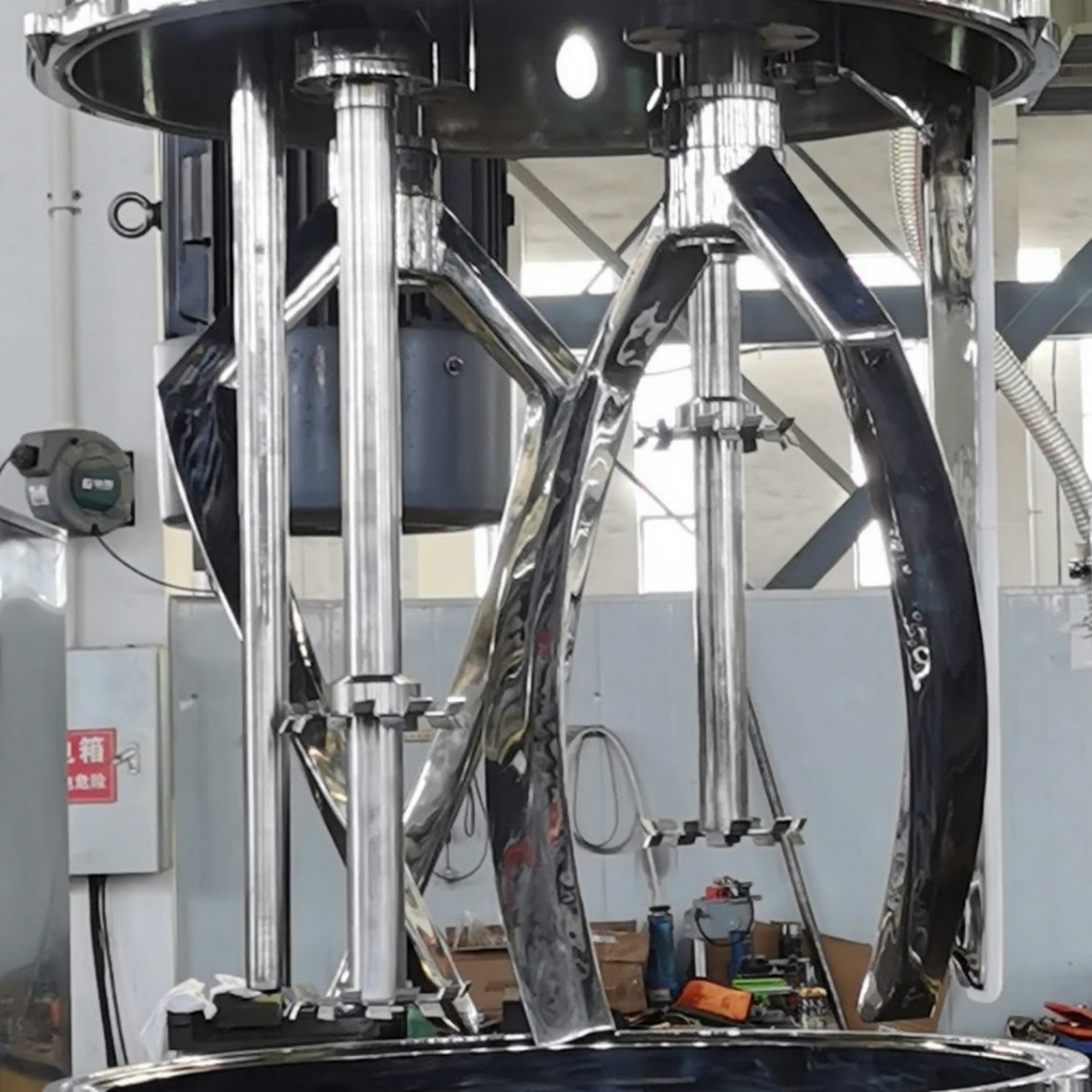 O desempenho do equipamento depende de seu avançado mecanismo de dispersão planetária dupla. Dois agitadores executam "revolução em torno do centro da câmara" e "rotação sincronizadas em seus próprios eixos", emparelhados com discos de dispersão de alta velocidade que atingem até 3000 rpm. Este design de movimento duplo garante cobertura total da cavidade de 500L, mesmo para materiais de viscosidade ultra-alta (até 2.000.000 cps), como compósitos poliméricos, revestimentos com alto teor de sólidos e adesivos estruturais. Ele quebra aglomerados, homogeneíza componentes e evita zonas mortas com eficiência - pontos problemáticos comuns na mistura de grande capacidade. O sistema de vácuo integrado opcional (capaz de atingir -0,098 MPa) remove o ar e a umidade presos, essenciais para a produção de produtos de alta resistência e sem bolhas, como encapsulantes eletrônicos e selantes automotivos.