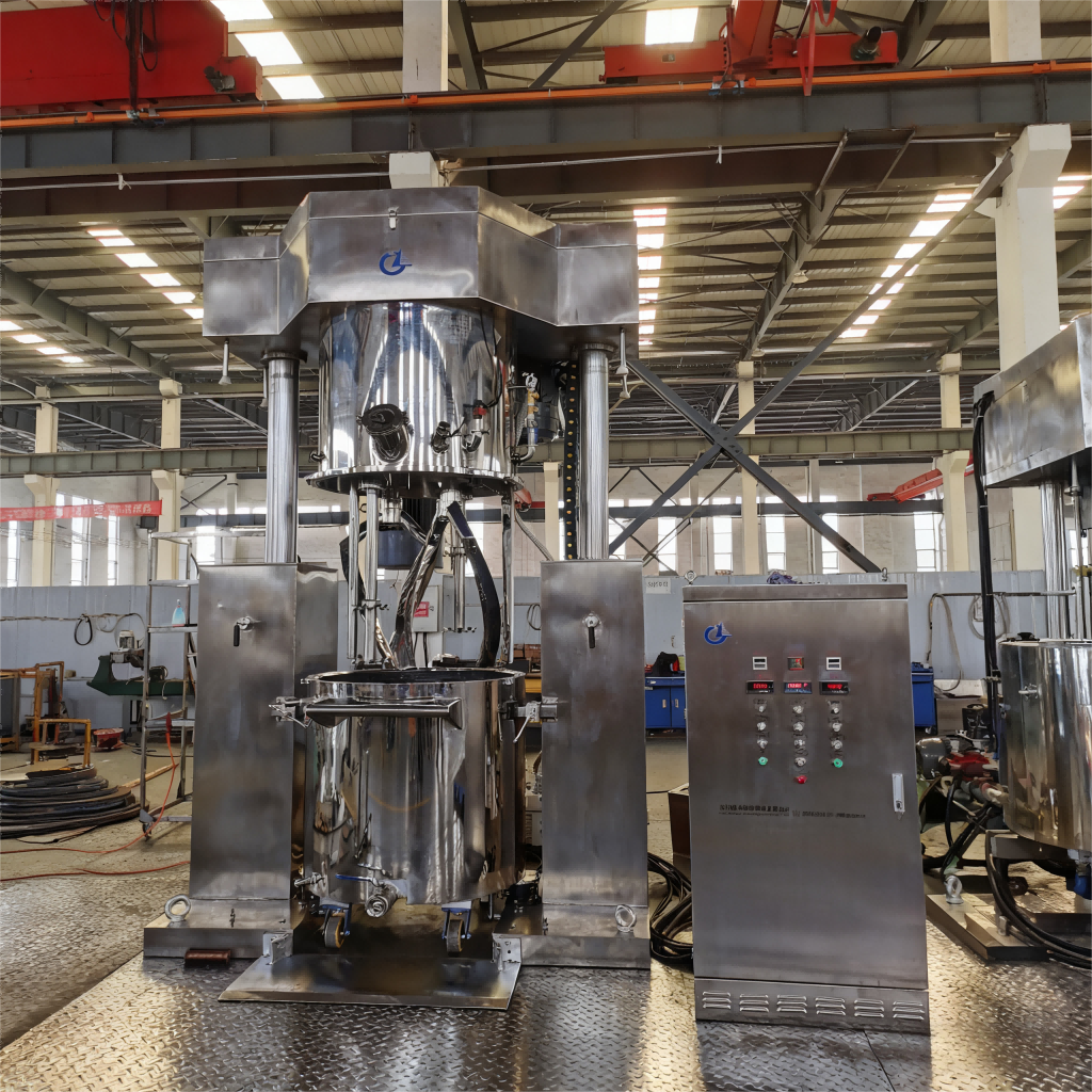 Excelente mistura para materiais de alta viscosidade: É especialmente projetado para lidar com substâncias de alta viscosidade (normalmente de várias centenas de milhares a mais de um milhão de centipoise), como adesivos, selantes, géis e pastas de alta concentração. As fortes forças de cisalhamento e amassamento geradas pelo movimento duplo permitem uma mistura completa de materiais espessos.