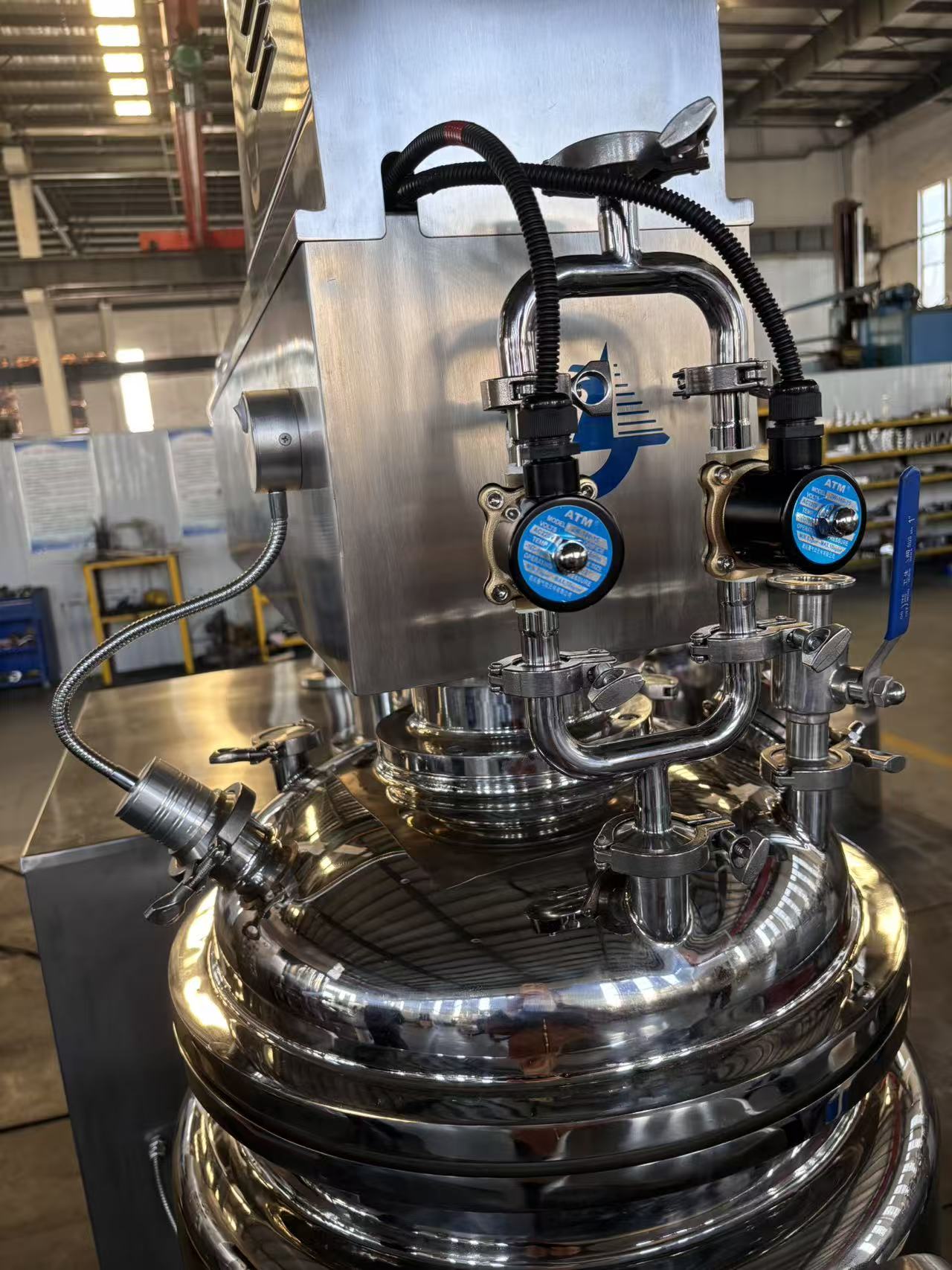Em termos do sistema de controle central, o equipamento é equipado com controle inteligente CLP e interface de operação em tela sensível ao toque em alta definição, proporcionando controle automático de processo completo. Os operadores podem facilmente definir parâmetros-chave como velocidade de agitação, tempo de emulsificação e grau de vácuo através da tela sensível ao toque. O sistema exibe o status operacional em tempo real e possui funções como memória de parâmetros e alarme de falha, o que reduz muito a dificuldade de operação, evita erros de operação humana e garante a consistência e estabilidade do processo de produção.